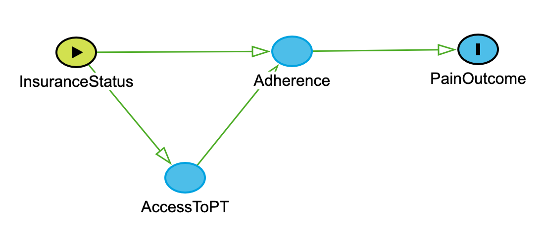 InsuranceStatus -> AccessToPT -> Adherence -> PainOutcome